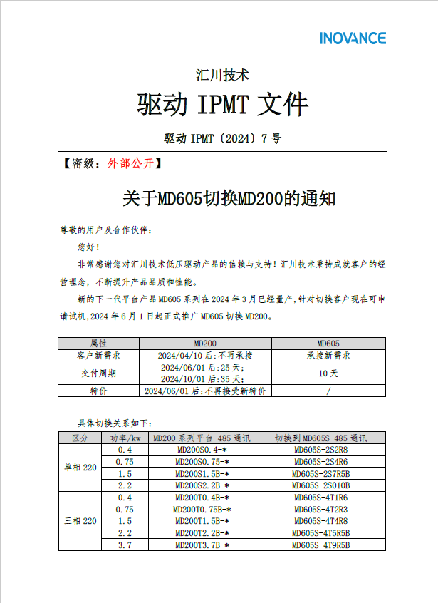 匯川變頻器MD605切換MD200情況說明