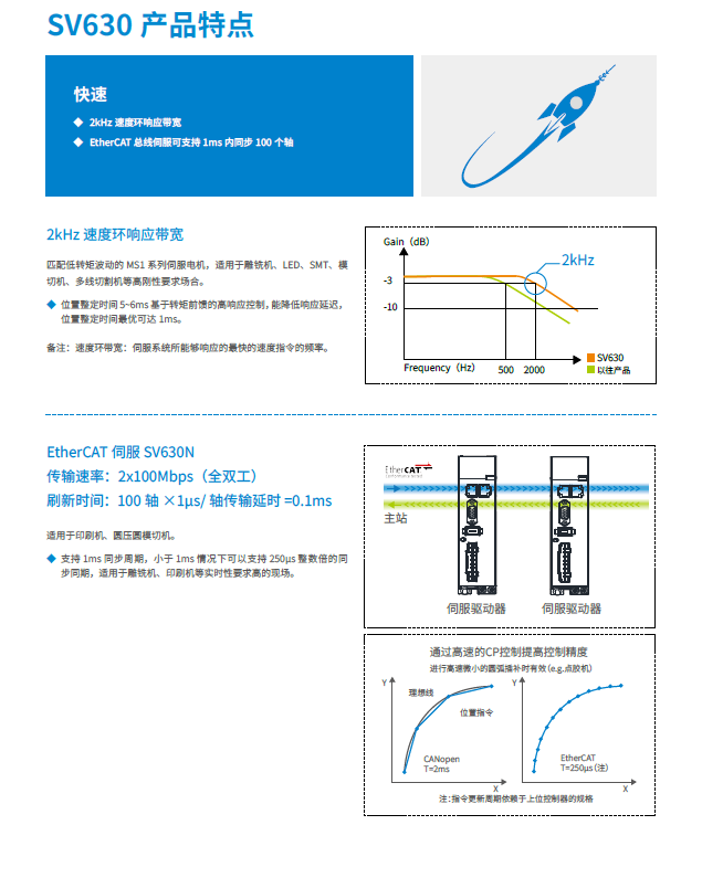 SV630 系列伺服是匯川技術(shù)研制的高性能中小功率的交流伺服產(chǎn)品。該系列產(chǎn)品功率范圍為0.05kW ~ 7.5 kW,采用以太網(wǎng)通訊接口,支持EtherCAT 、Modbus、CANopen 和CANLink 等通信協(xié)議,采用對應(yīng)的通信接口,配合上位機(jī)可實現(xiàn)多臺伺服驅(qū)動器聯(lián)網(wǎng)運(yùn)行。